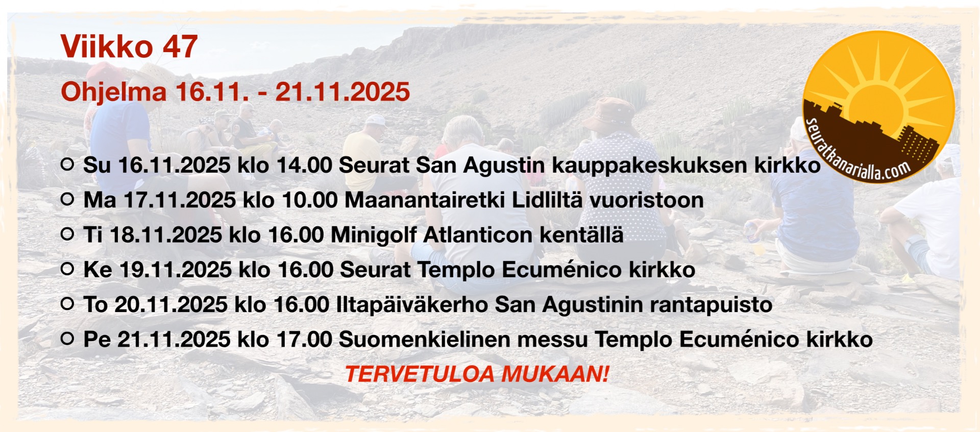 Vanhoillislestadiolaisen yhteisön toimintaan ovat tervetulleita kaikki Gran Canarian saarella lomailevat.