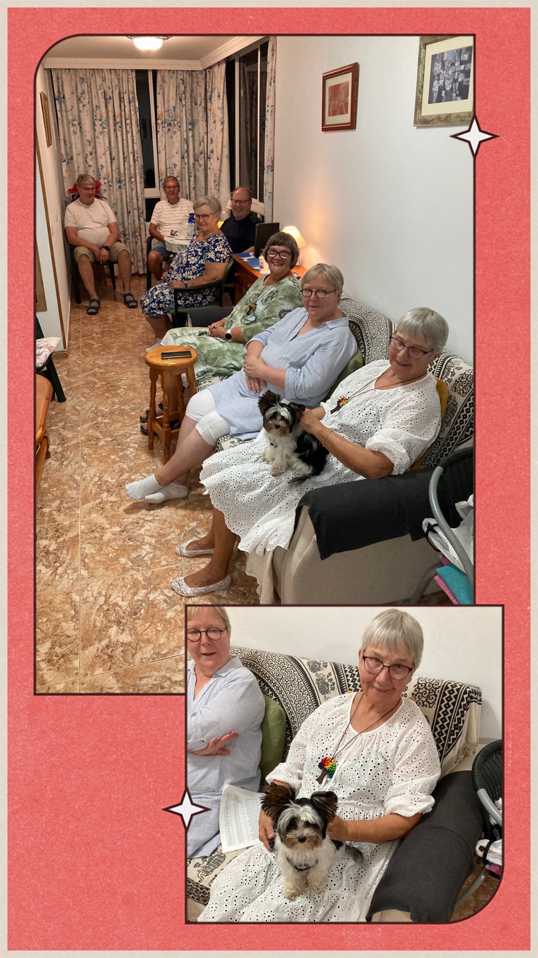 Seuroihin oli jälleen saapunut pitkään talveaan täällä viettävien lisäksi iloksemme myös kaikenikäisiä lyhytlomalaisia. Jo muutama lapsi tuo eläkeläisten seuroihin iloisemman tunnelman.