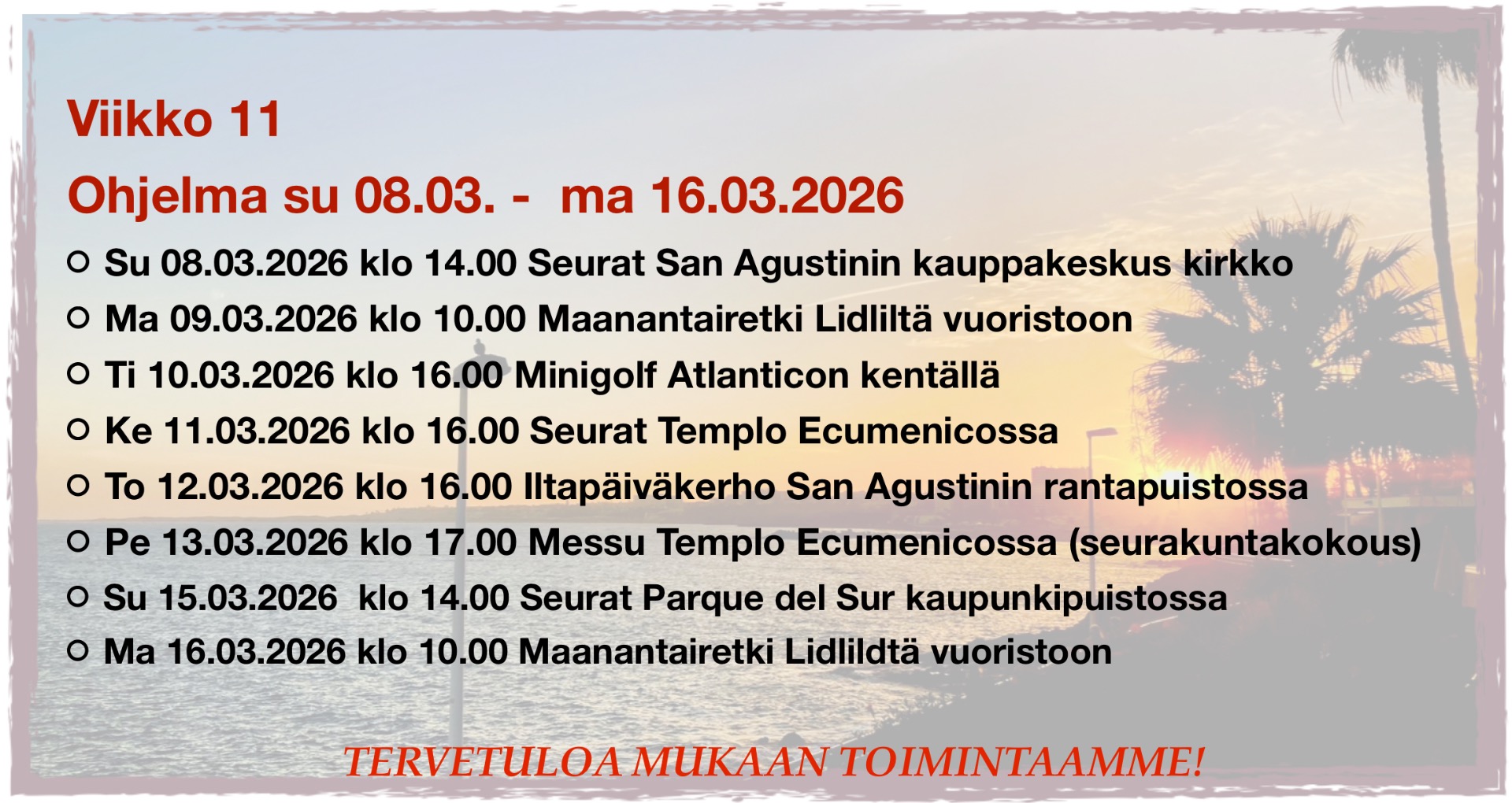 Sunnuntaiseuroissa San Agustinin kauppakeskuksen kirkossa 8.3.2026