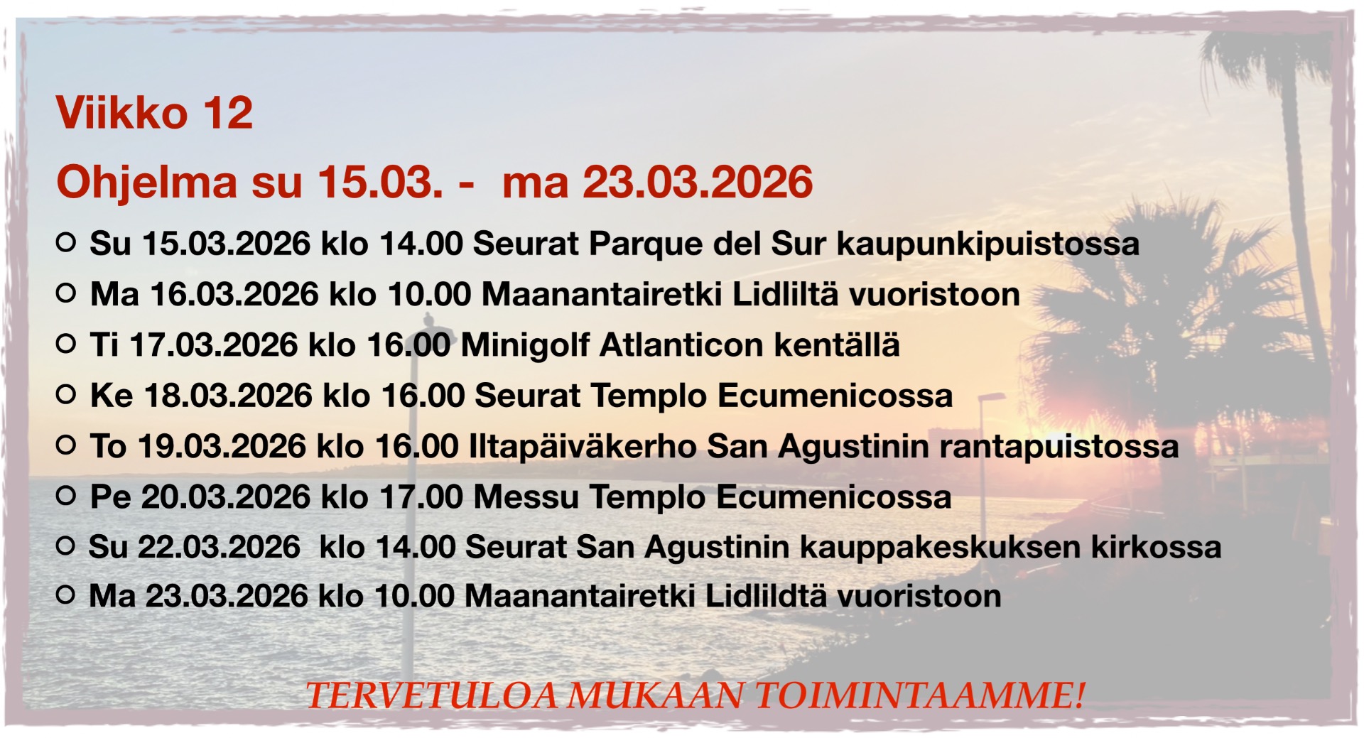 Toimintaamme ovat tervetulleita kaikki Gran Canarian saarella lomailevat.
